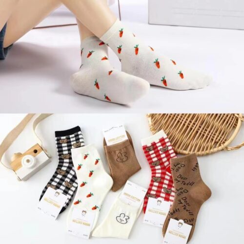 Calcetín Infantil Tonos Rosas y Grises Estampados Variados