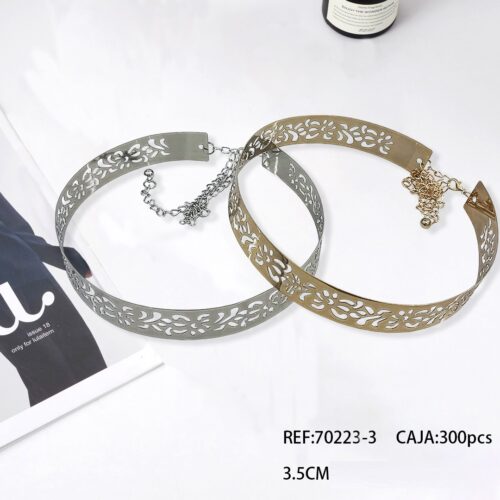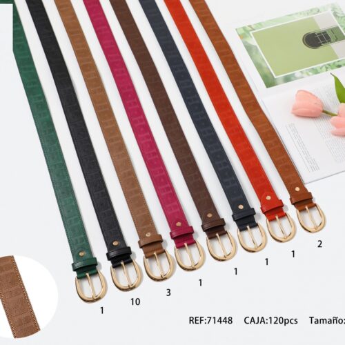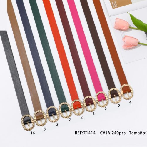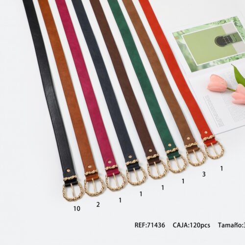 Cinturón Liso Detalle Grabado Hebilla Redonda