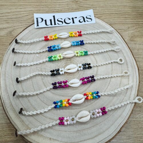 Pulsera Tailandia Bolitas Flores y Conchas