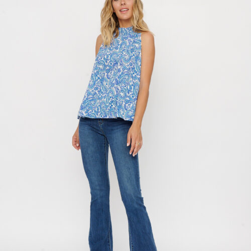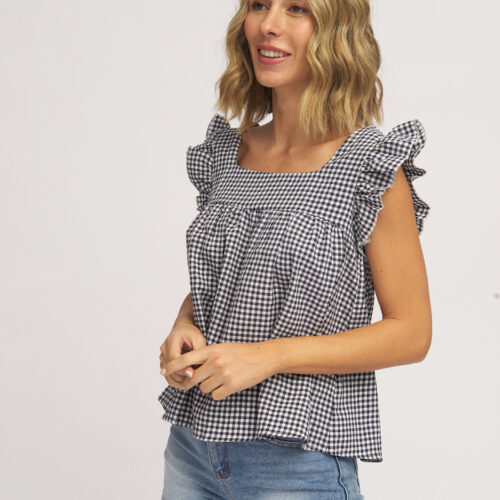 Blusa Cuadros Vichy Azul Oscuro con Volante Mangas