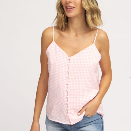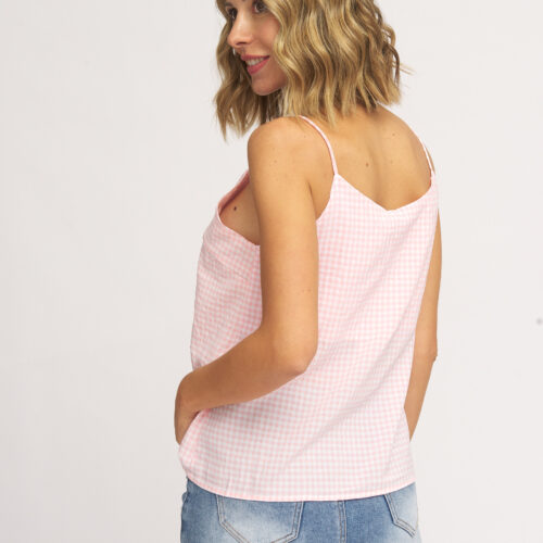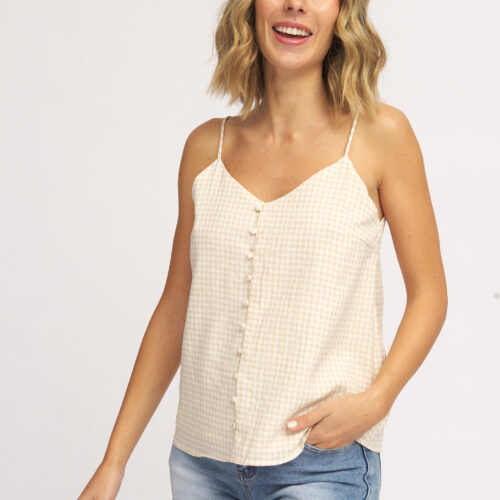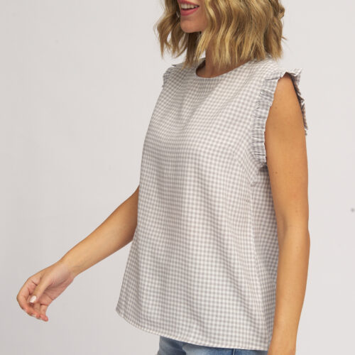 Blusa Cuadros Vichy Caramelo con Volante Mangas