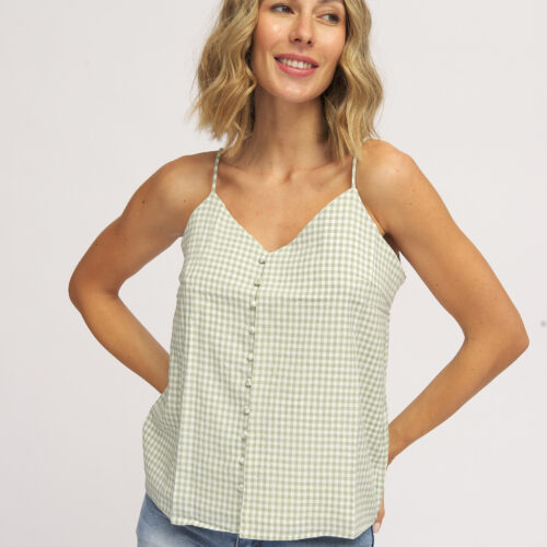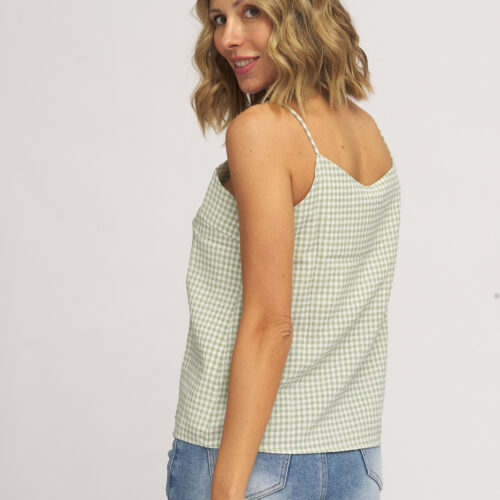 Blusa Cuadros Vichy Verde Claro con Volante Mangas