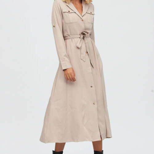 Vestido Largo Camisero Camel Botones