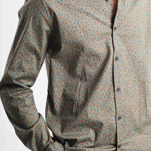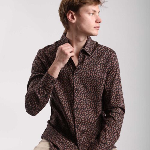 Camisa Manga Larga Marrón Estampado Hojas