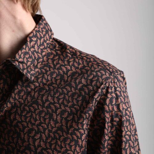 Camisa Manga Larga Negra Estampado Hojas