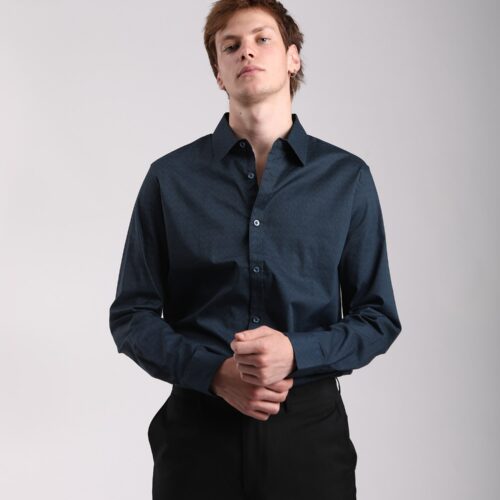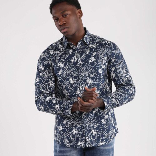 Camisa Manga Larga Azul Marino Hojas