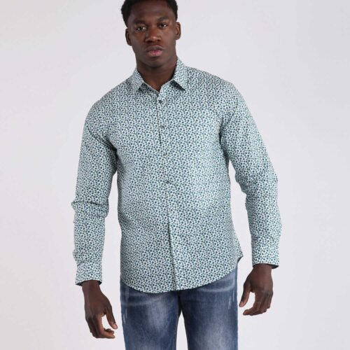 Camisa Manga Larga Azul Estampado Geométrico