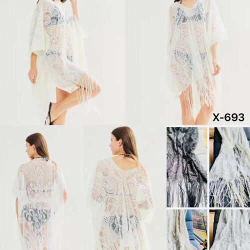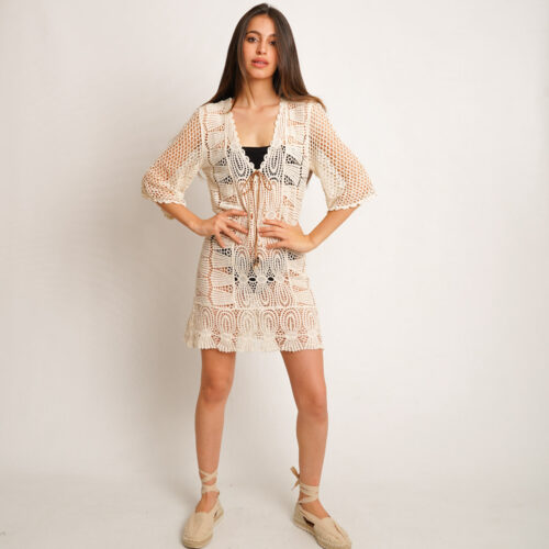Caftán Encaje Flecos Corto Playa