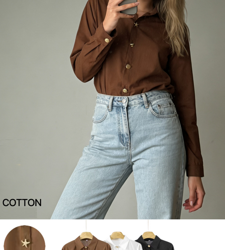 Top Manga Larga Botones Estrella