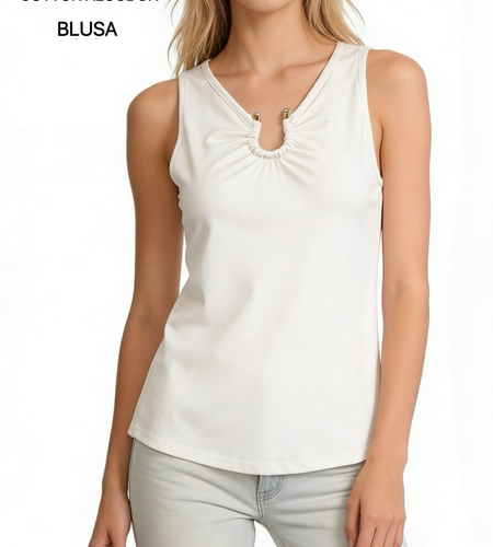 Top Sin Mangas Lisa Con Detalle Fruncido en Escote