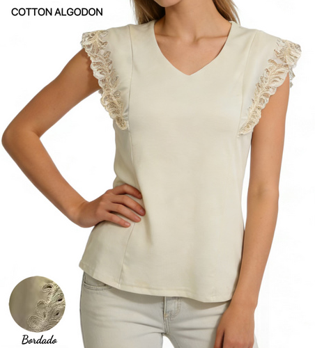Top Manga Corta con Volantes y Bordados