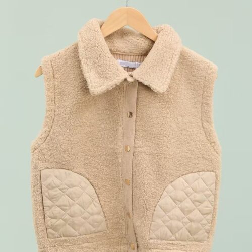 Chaleco Corto con Solapas Diseño Borreguito Detalle Botones Dorados