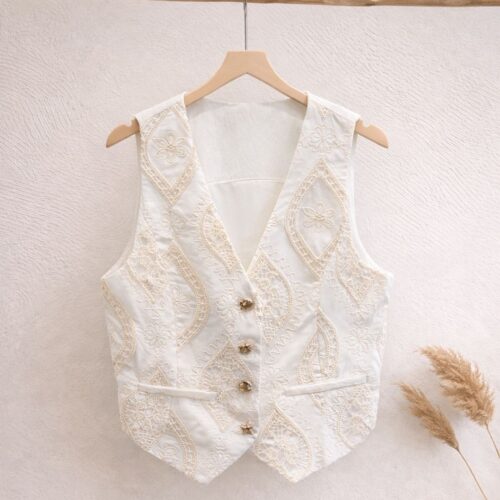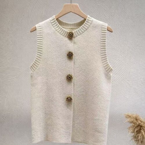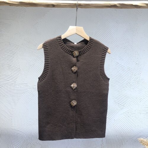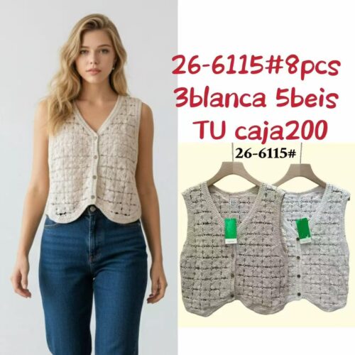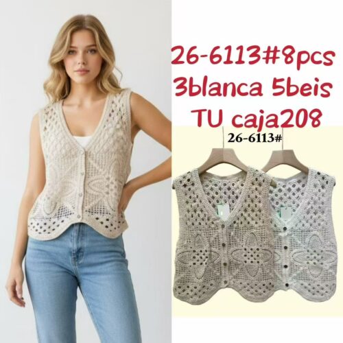 Chaleco Corto con Solapas Diseño Borreguito Detalle Botones Dorados
