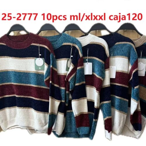 Jersey Chenilla Diseño Rayas Multicolor Escote Redondo