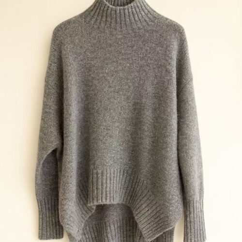 Jersey Gris Cuello Alto Diseño Oversize Punto Grueso