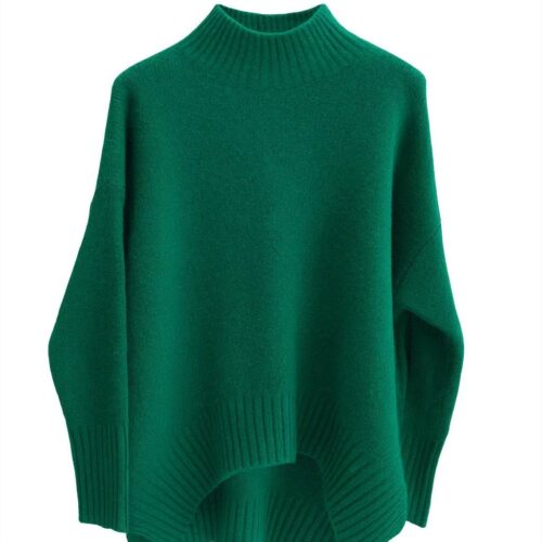 Jersey Verde Cuello Alto Diseño Oversize Punto Grueso