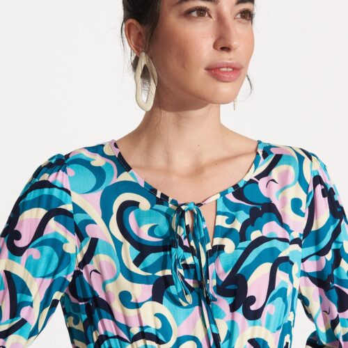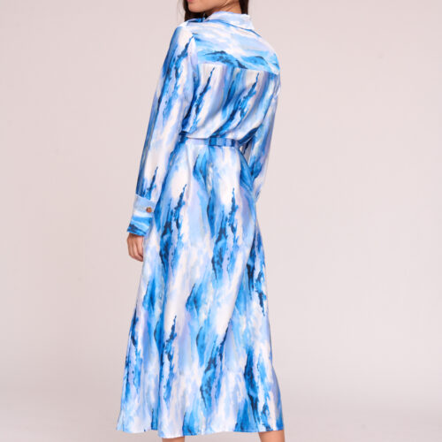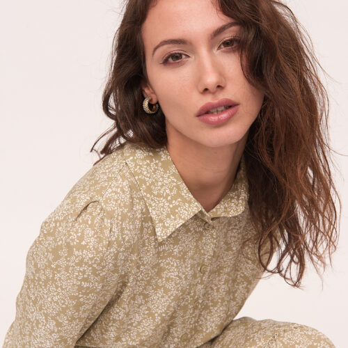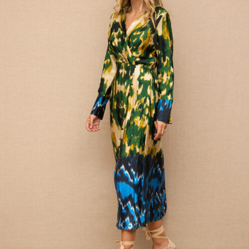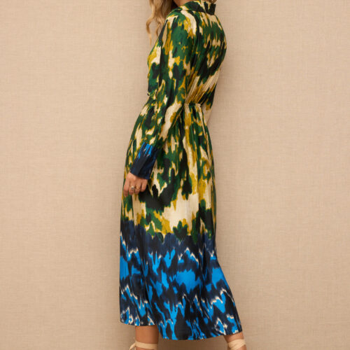 Vestido Camisero Escote Cruzado Largo Estampado Manga Larga Tonos Verdes
