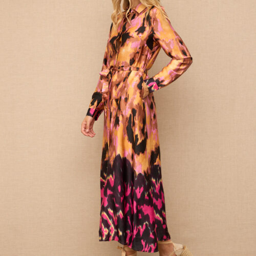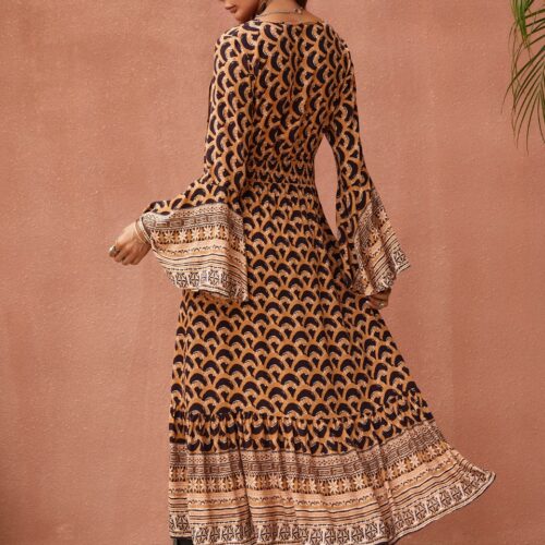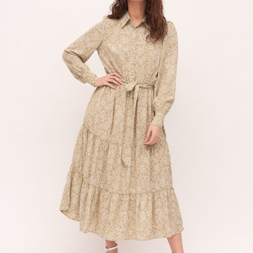 Vestido Camisero Largo Estampado Manga Larga Tonos Tierra