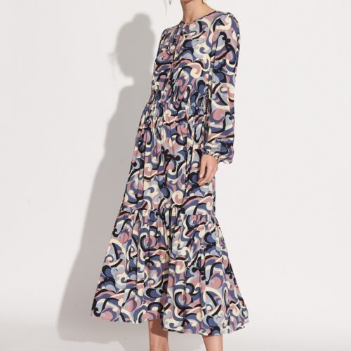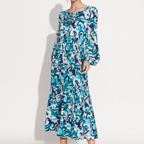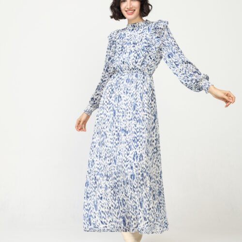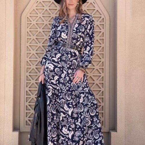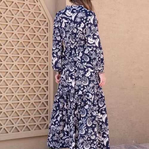 Vestido Largo Azul Oscuro con Estampado Blanco