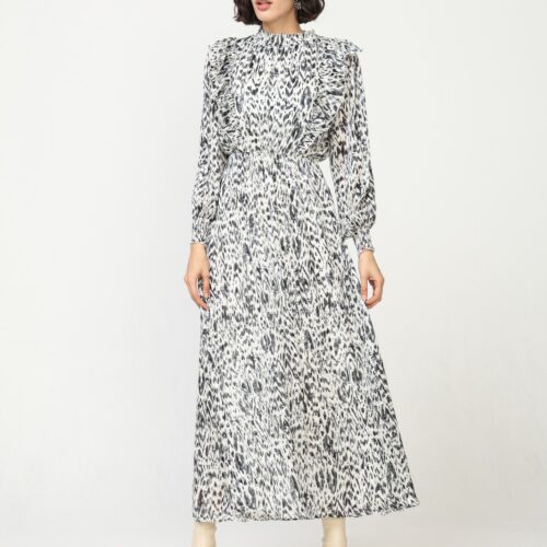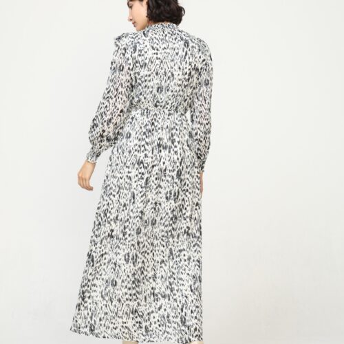 Vestido Negro Largo Estampado Manga Larga Abullonada