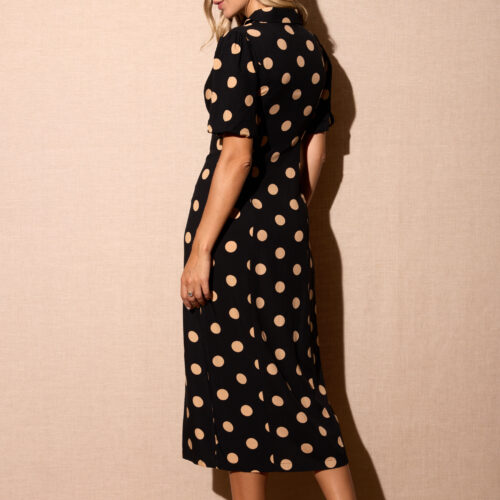 Vestido Largo Negro Camisero Estampado Lunares Grandes Beige