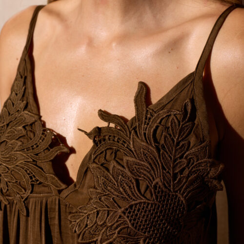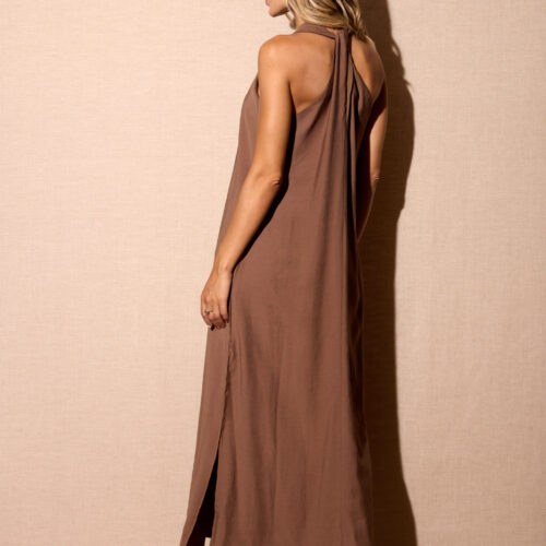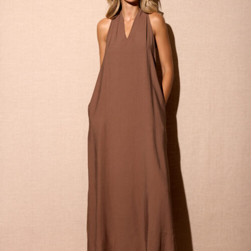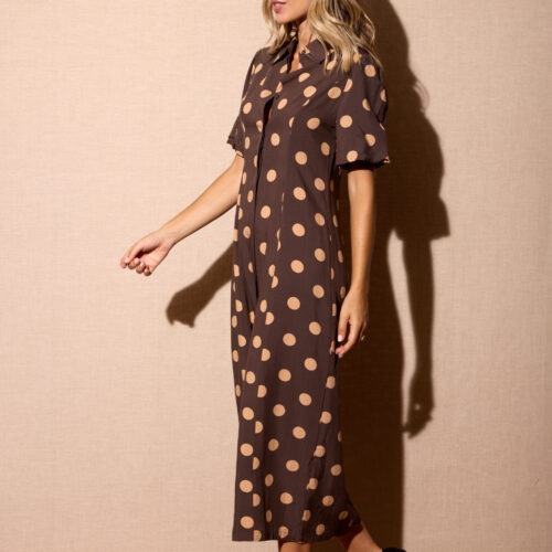 Vestido Largo Camisero Marrón Estampado Lunares Grandes Beige