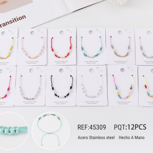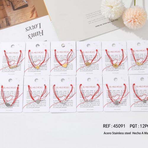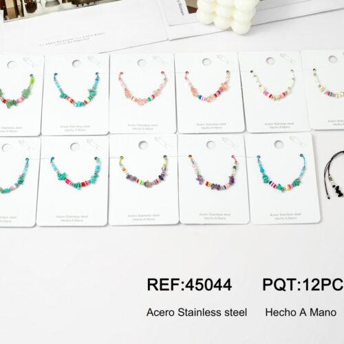 Tobillera Hilo con Bolitas y Colgante de Piedra Corazon