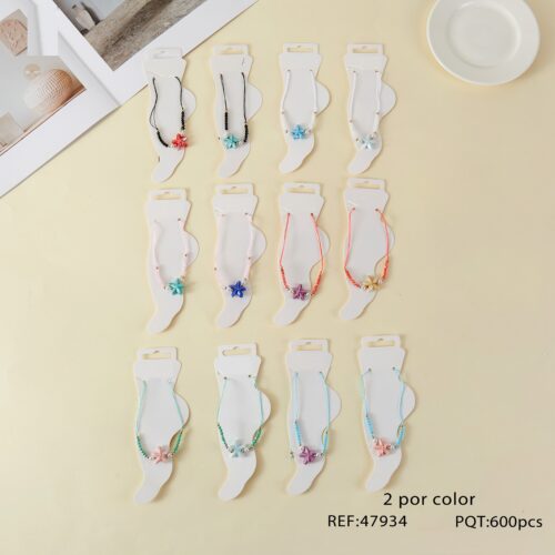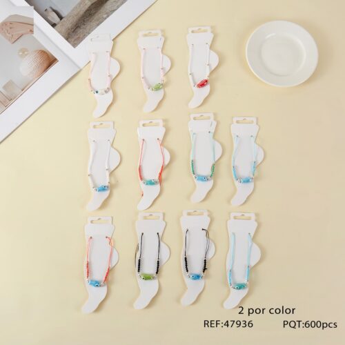 Tobillera Hilo con Bolitas y Colgante de Pez Estampado