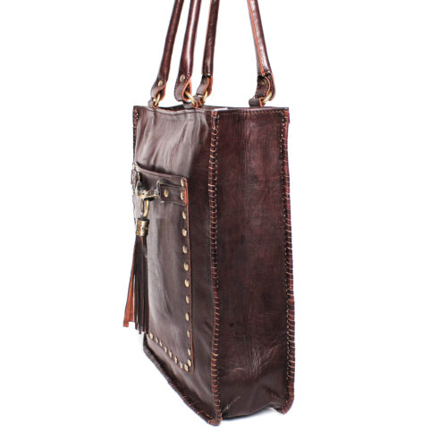 Bolso Bandolera Regulable Sobre Doble Asa de Piel Marruecos con Tachuelas