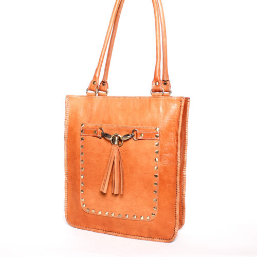 Bolso Mano y Bandolera Doble Asa de Piel Marruecos con Tachuelas