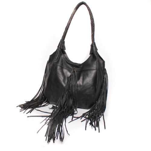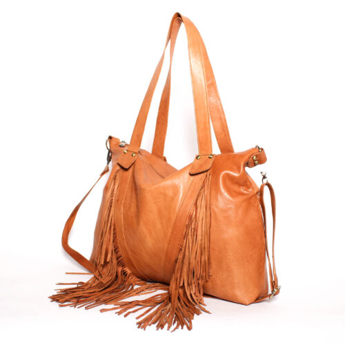 Bandolera Doble Asa de Piel Marruecos con Flecos Cierre Cremallera