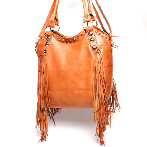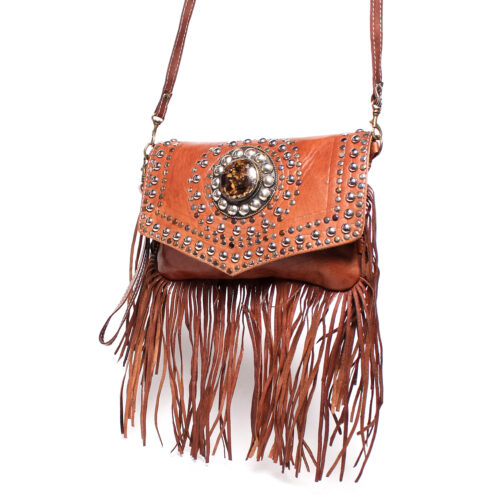 Bandolera de Piel Marruecos Doble Asa con Tachuelas y Flecos