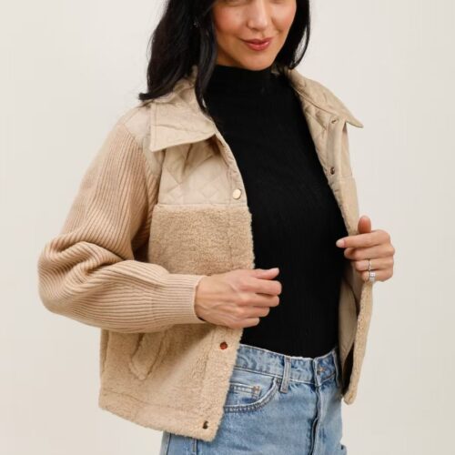 Chaqueta Corta Solapas Diseño Borreguito Bolsillos