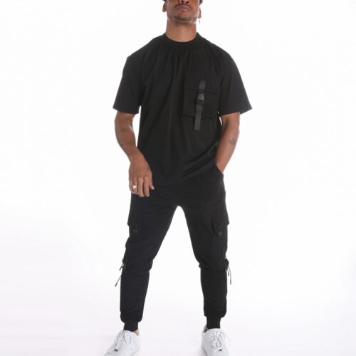 Camiseta Manga Corta Negra Detalle Bolsillo Lateral