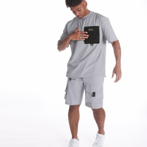 Camiseta Manga Corta Gris Detalle Bolsillo Lateral