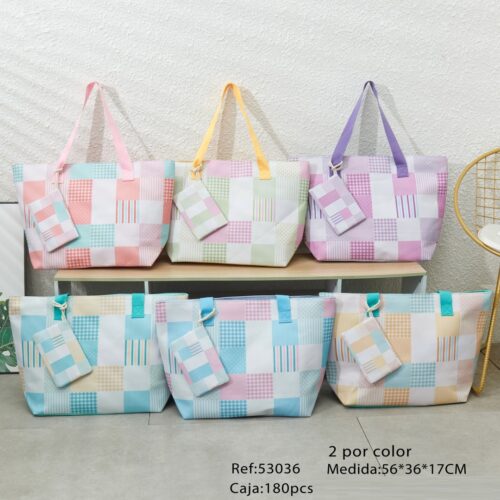 Bolso de Playa Cuadros y Rayas con Monedero