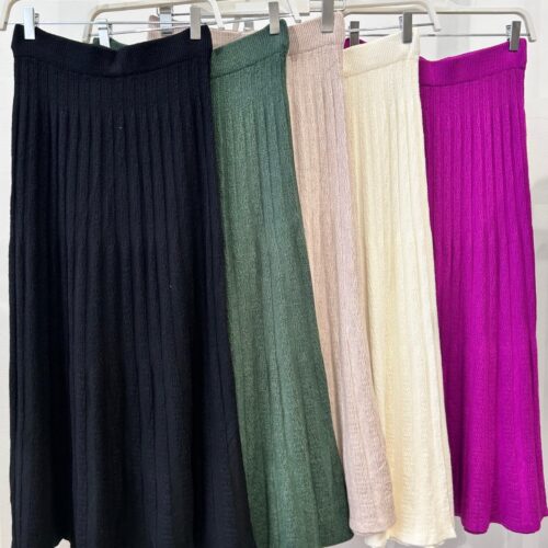 Falda Midi Lisa de Punto Plisada