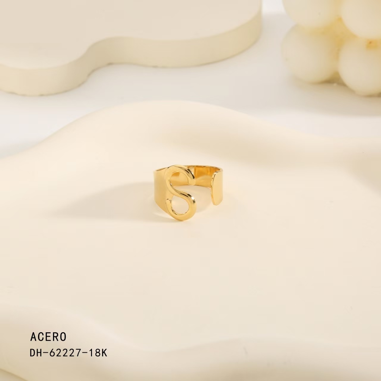 Anillo Acero Dorado Inicial "S" - Imagen 1