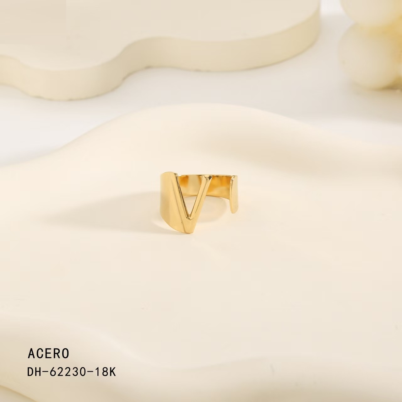 Anillo Acero Dorado Inicial “V”