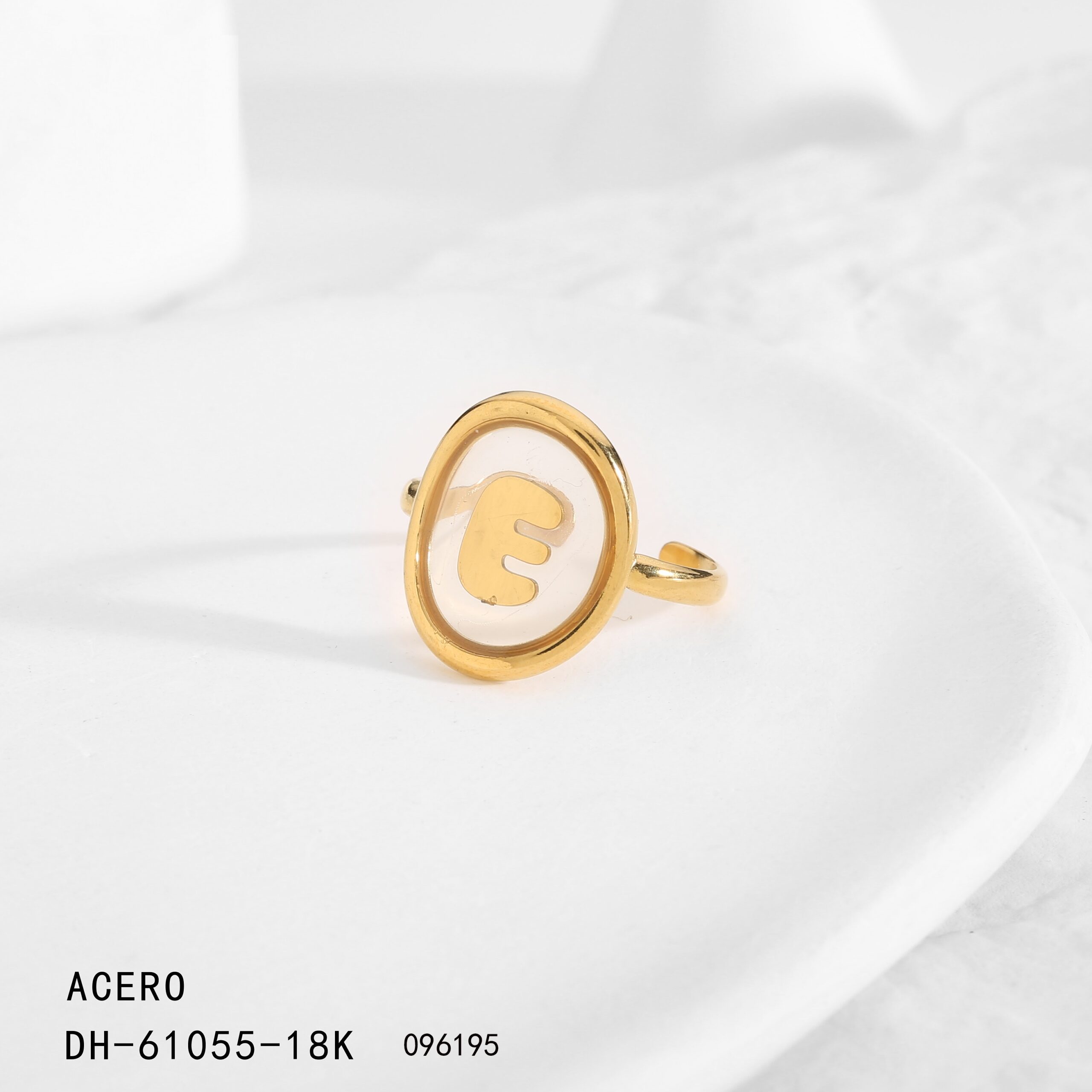 Anillo Acero Dorado Letra E