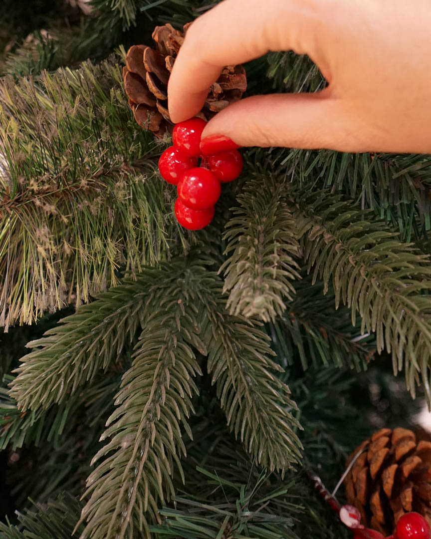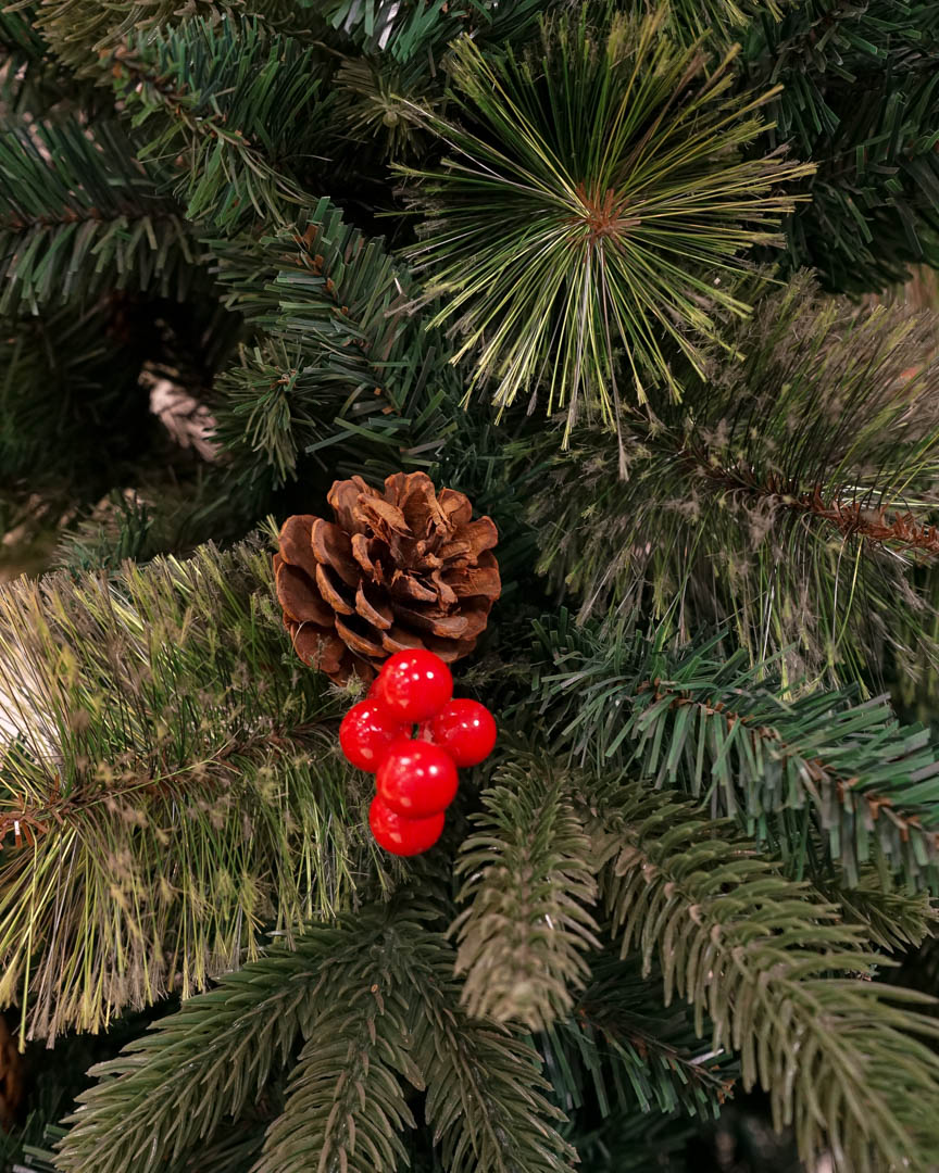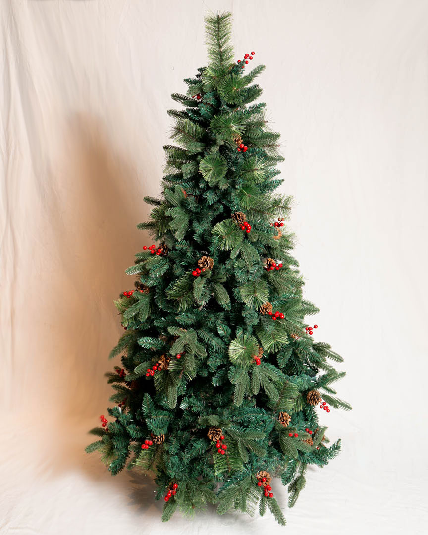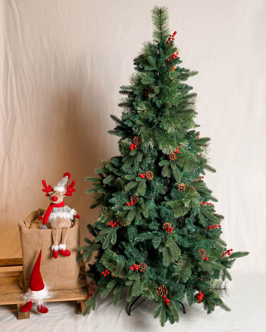• Árbol de Navidad Verde Decorado con Bayas y Piñas / Ramas combinadas.