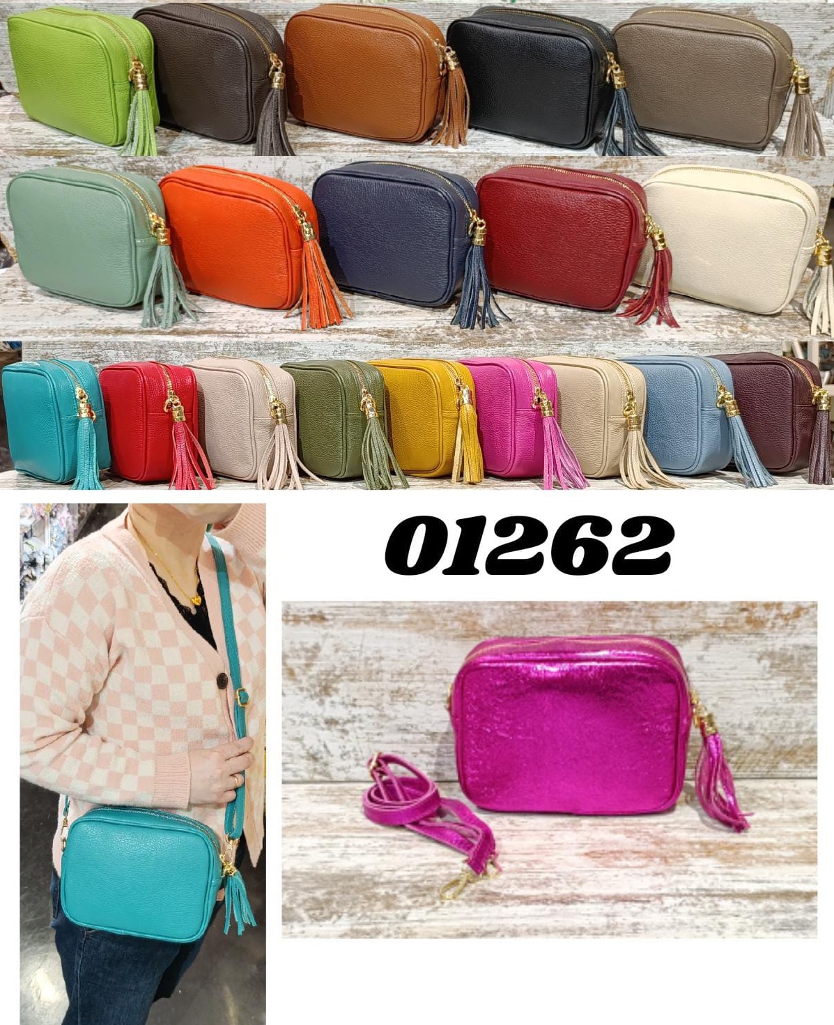 • Bolso bandolera de piel, con decoración de borla en el cierre de cremallera. Tiene una asa larga ajustable para llevar cruzado.