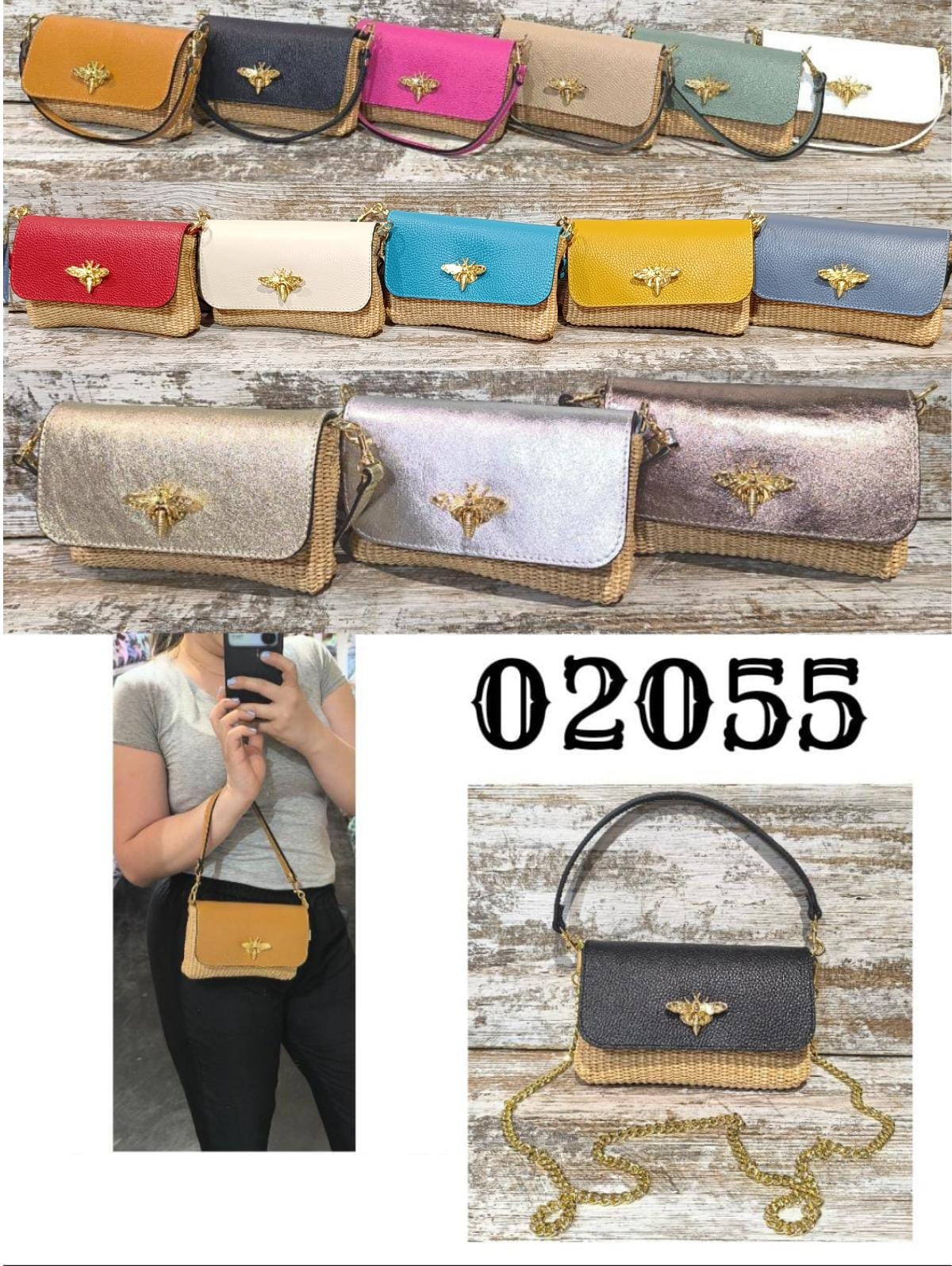 Bandolera Pequeña Efecto Rafia Combinado con Piel