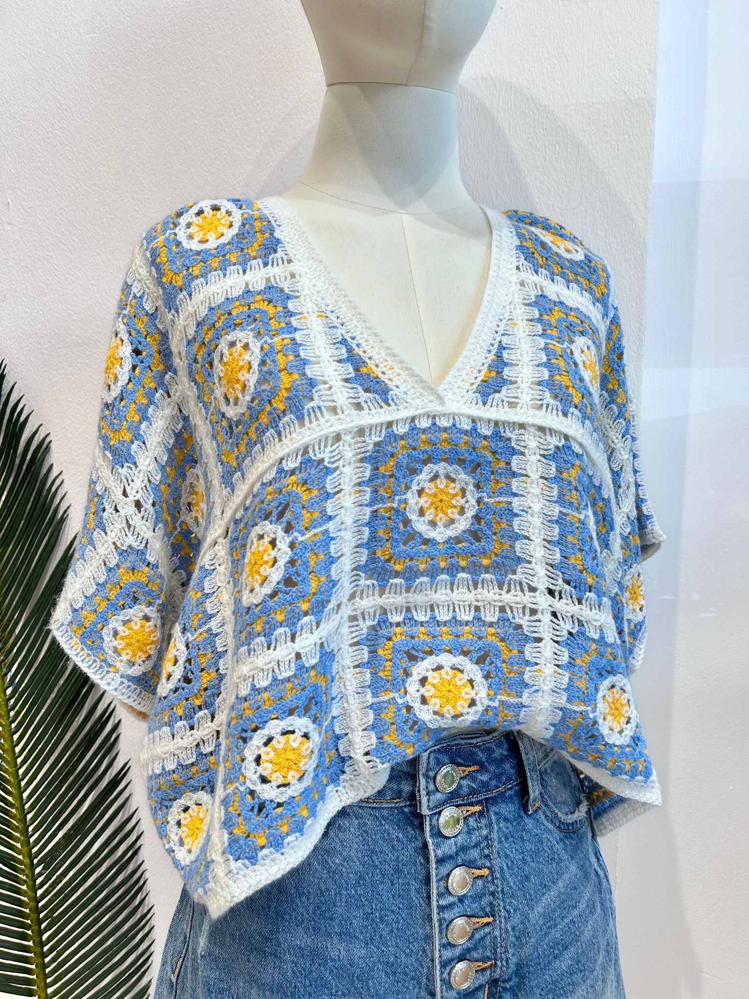 Blusa Crochet Azul Escote Pico