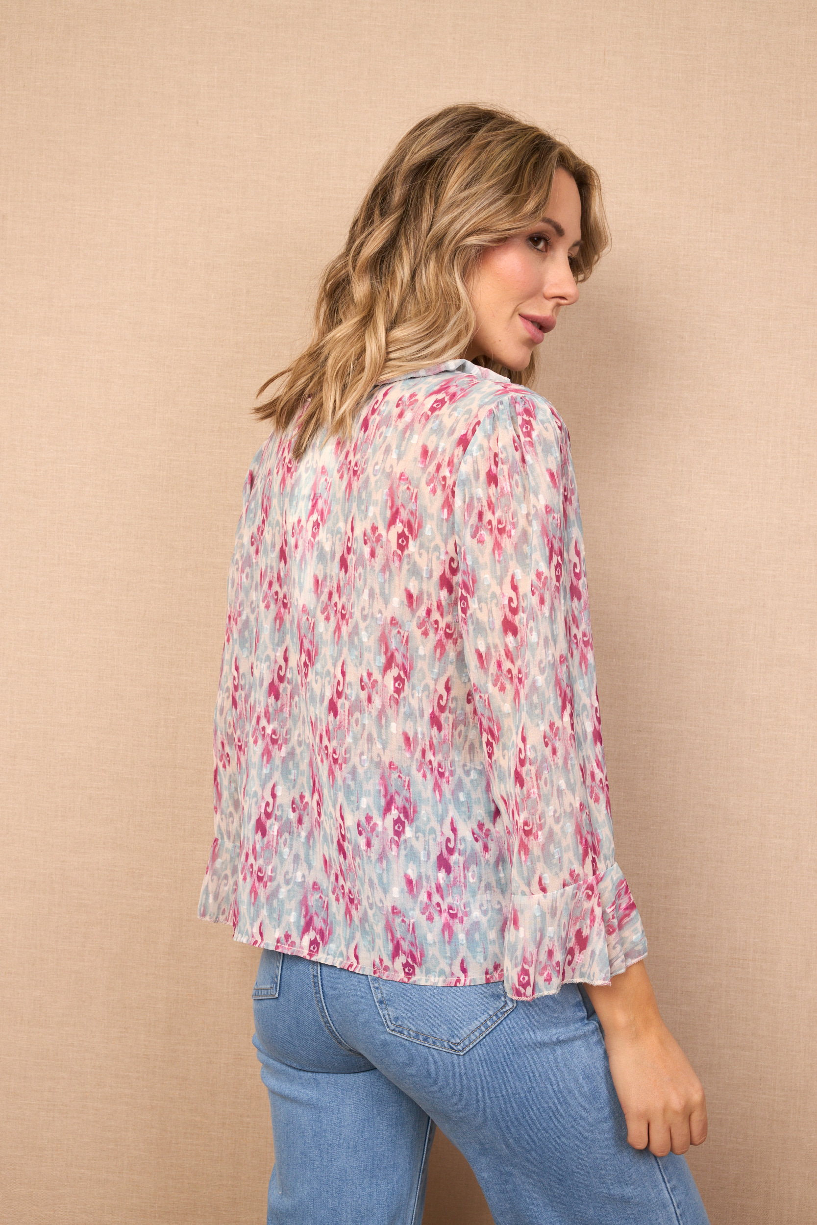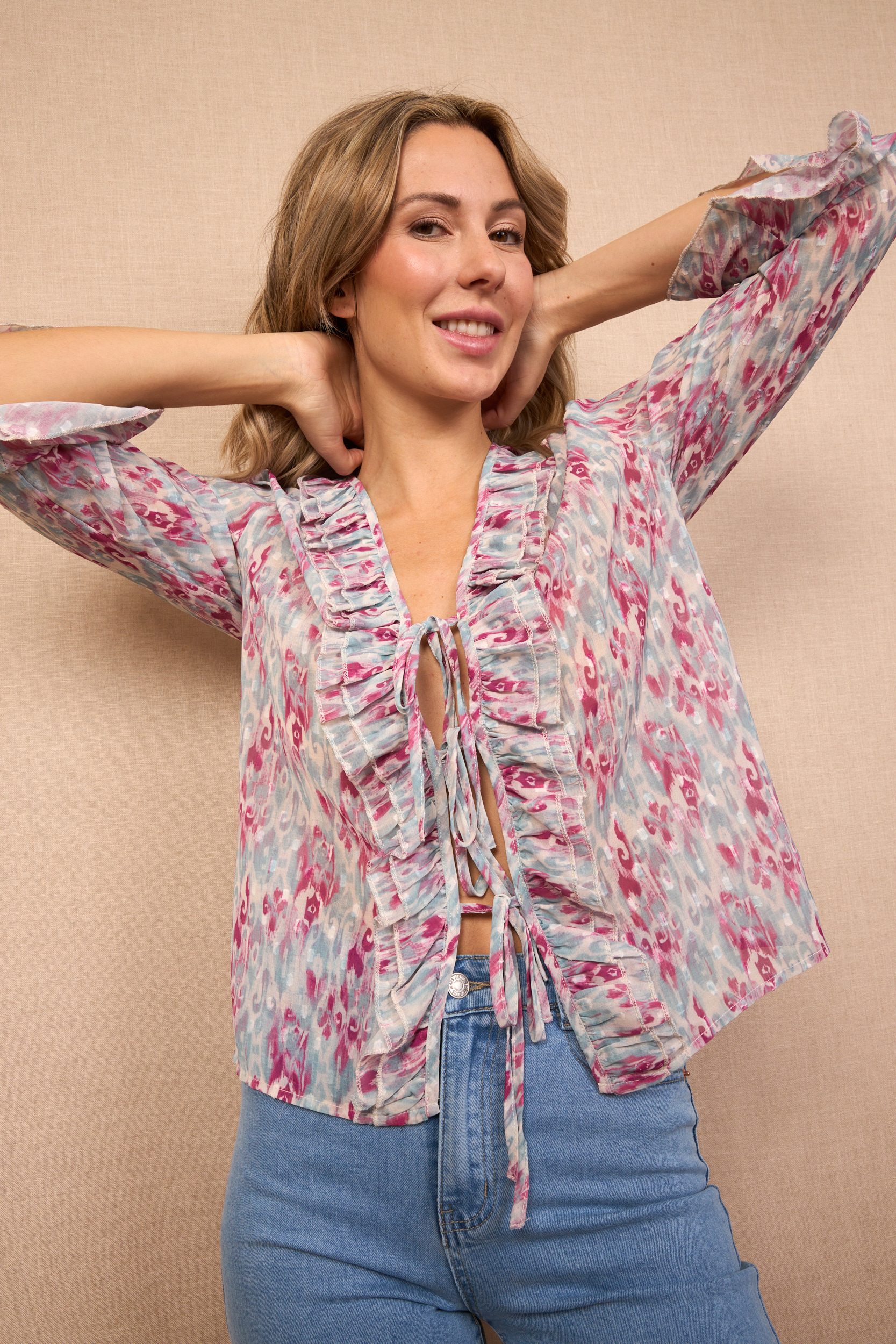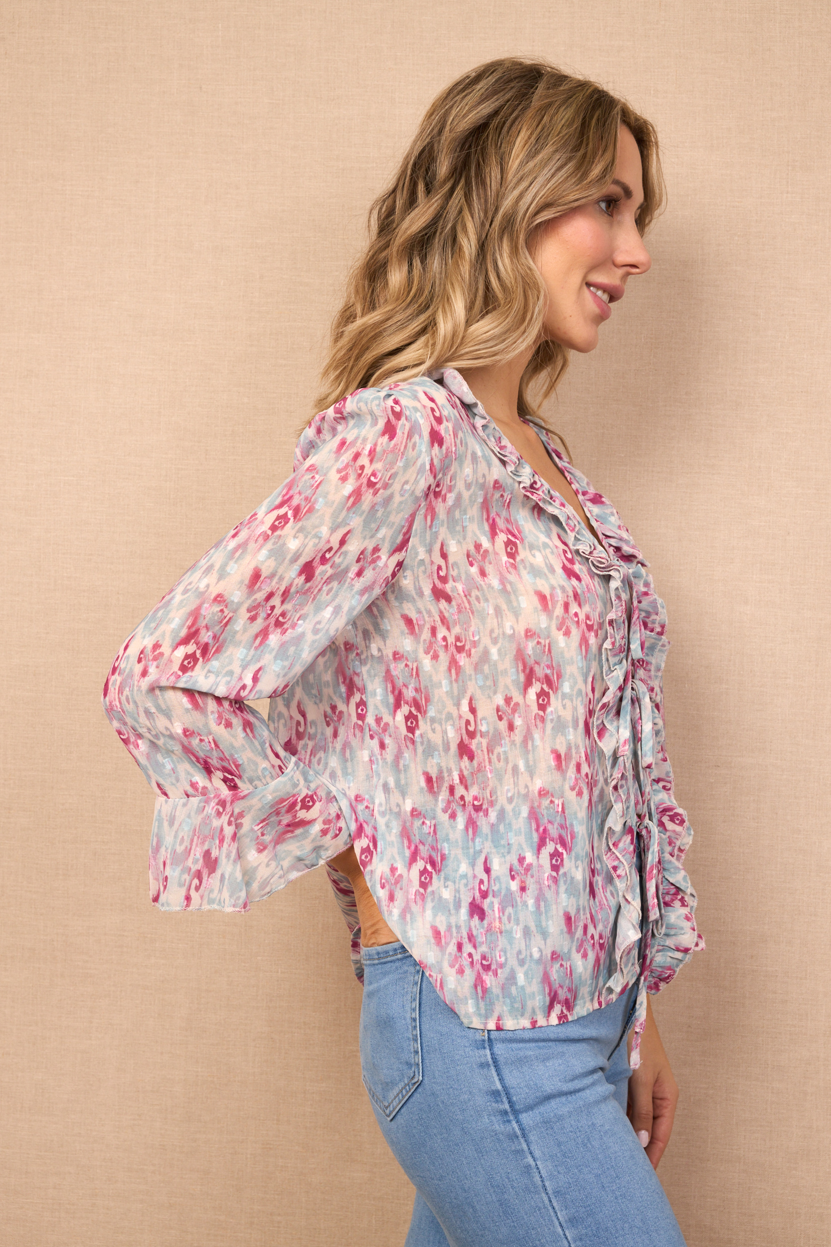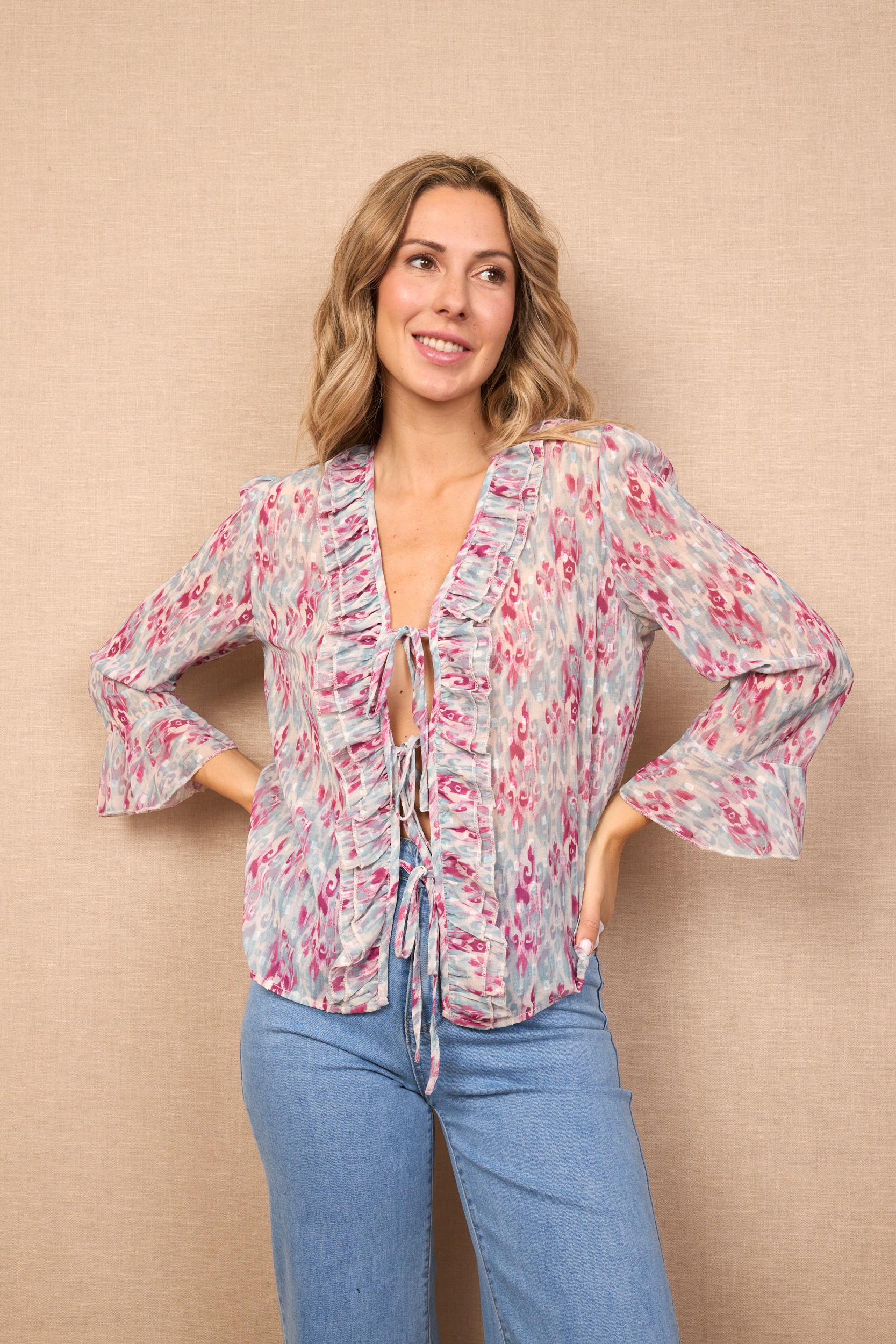Blusa Estampada Detalle Volantes con Apertura Frontal