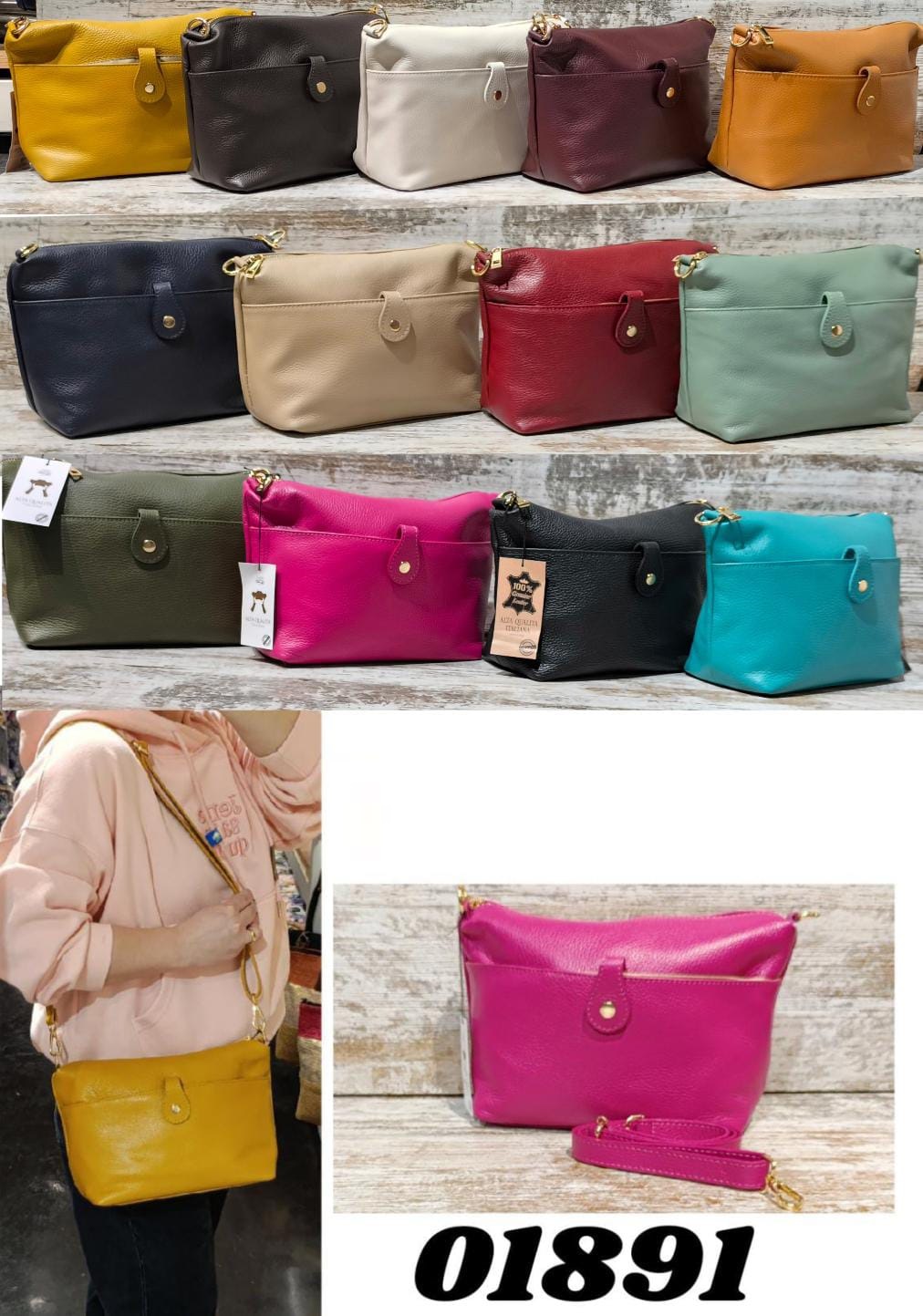 • Bolso de piel, con cierre de cremallera, tiene asa larga ajustable.