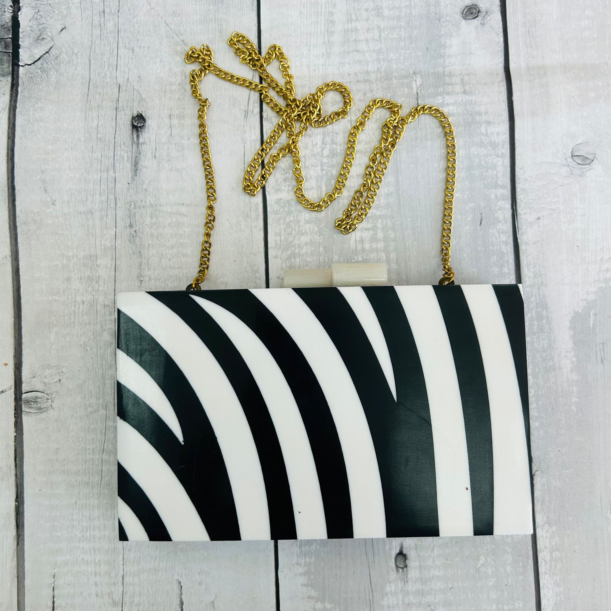 Bolso Cluth Rígido Nacarado Cebra