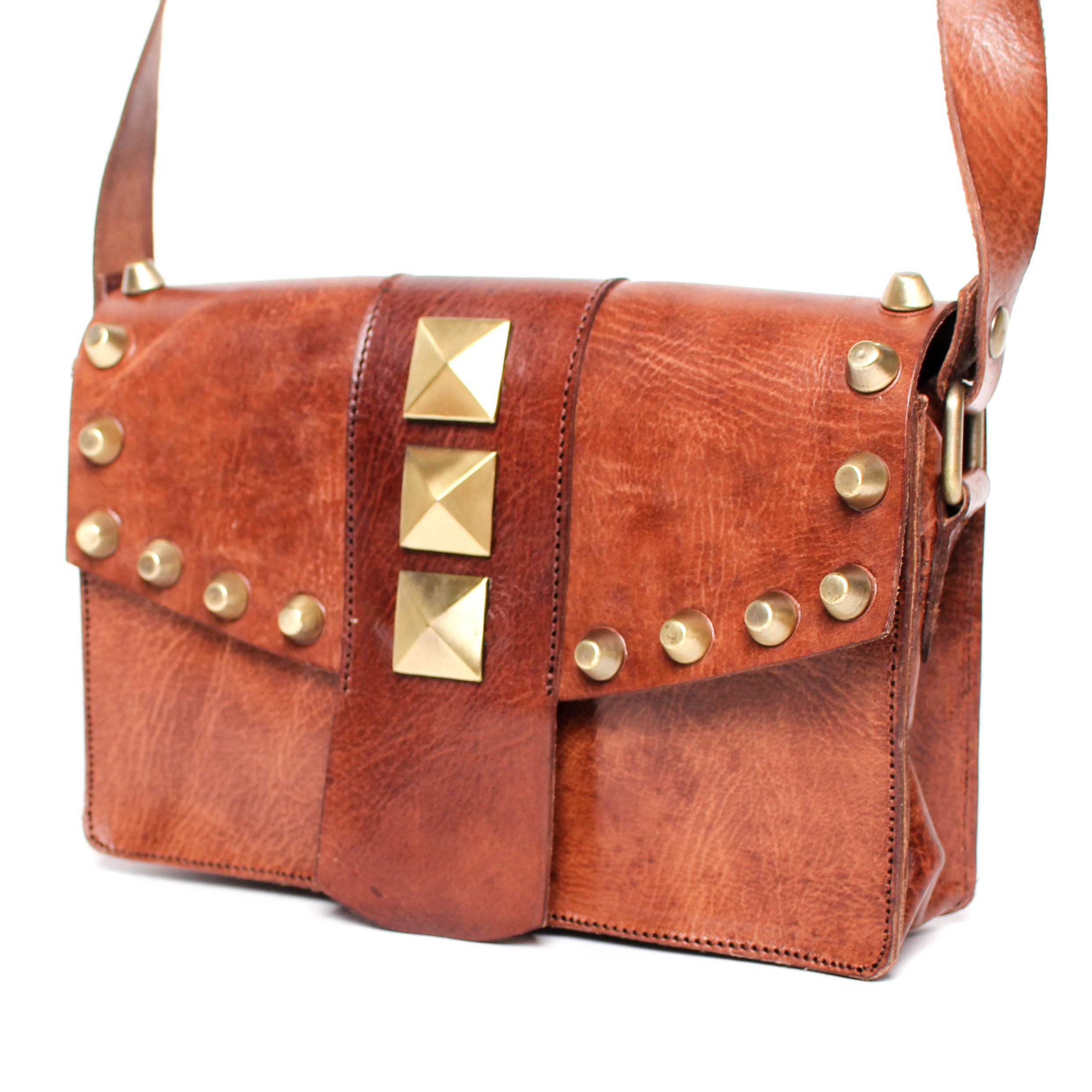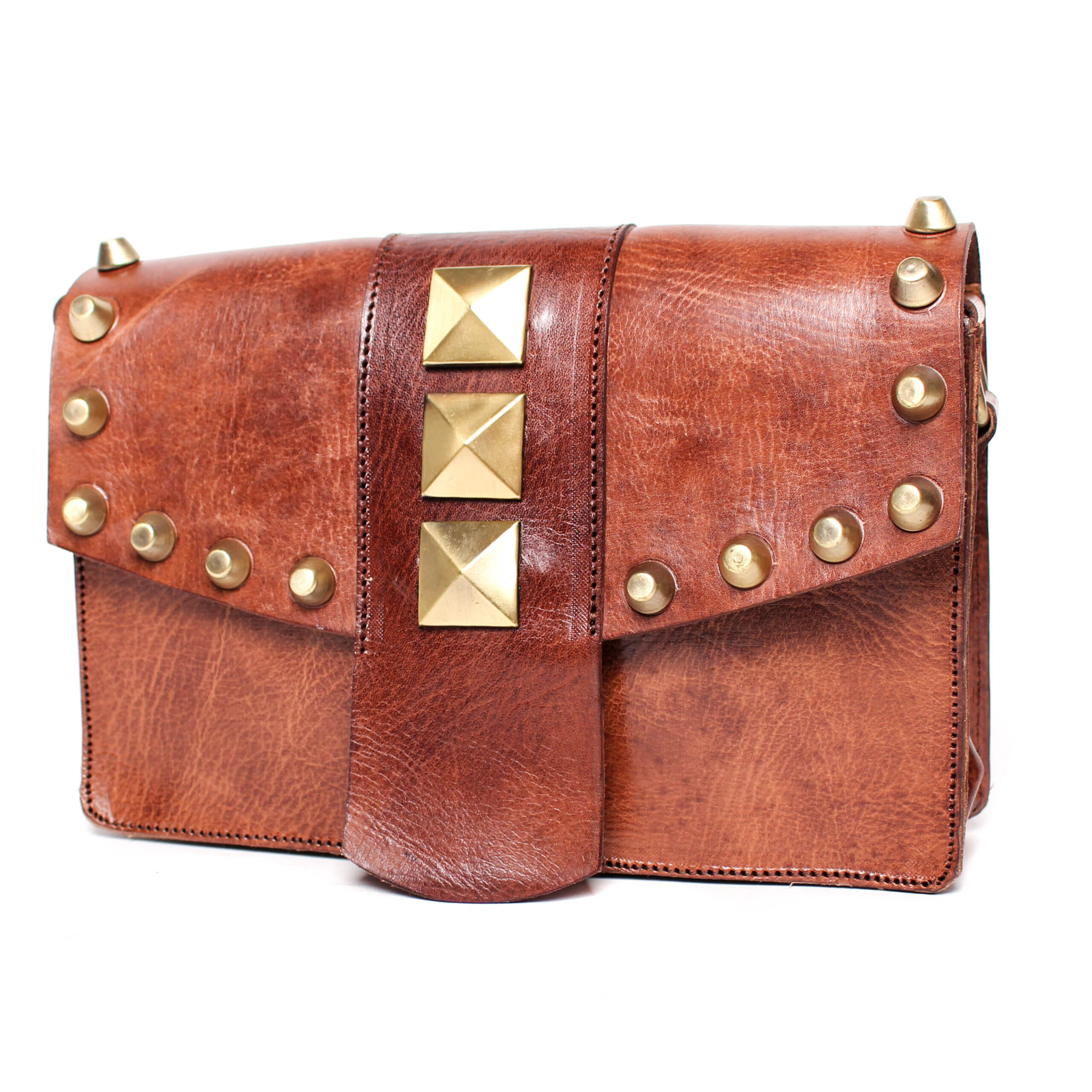 Bolso de Piel Marruecos Solapa con Tachuelas Varios Colores