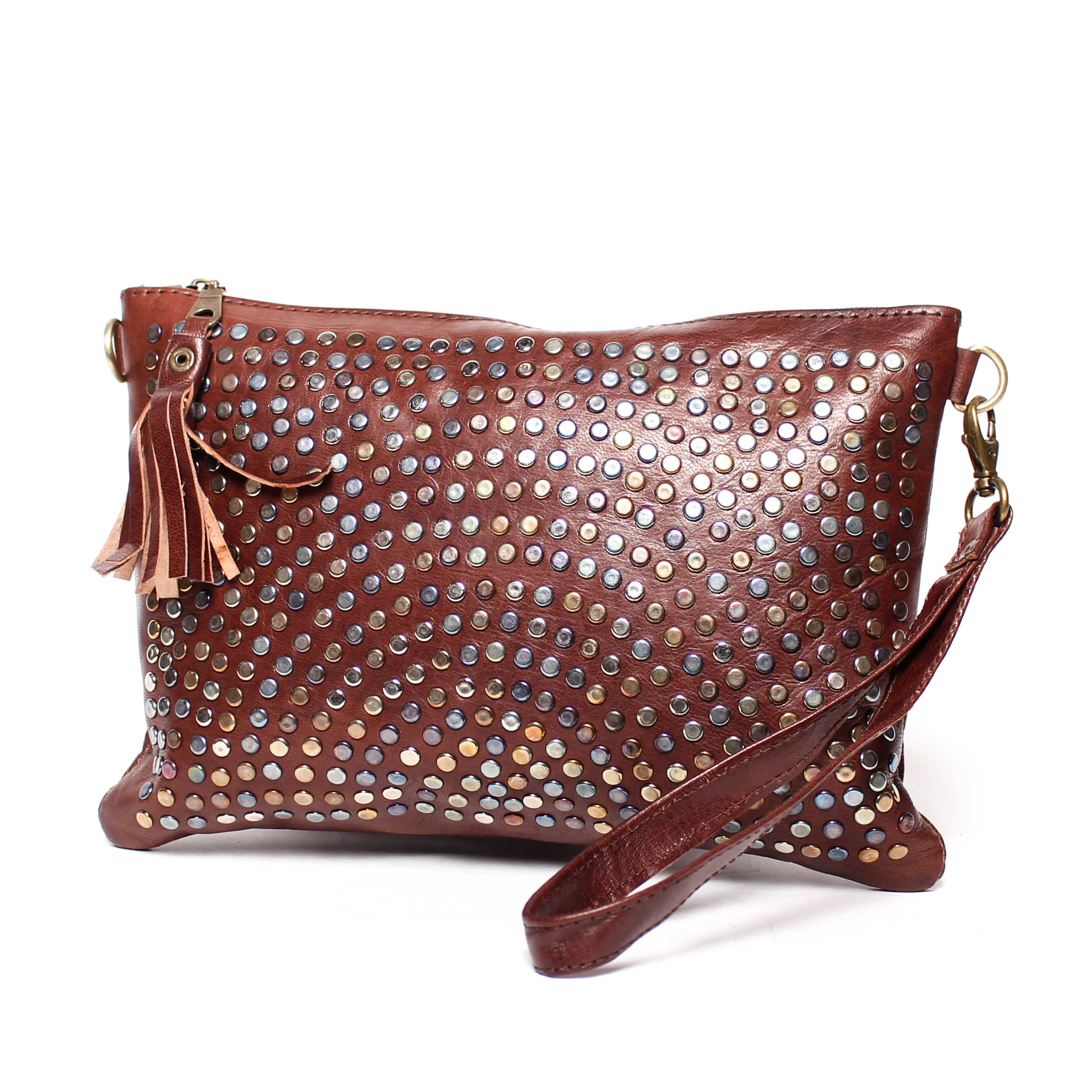 Bolso Mano y Bandolera Doble Asa de Piel Marruecos con Tachuelas
