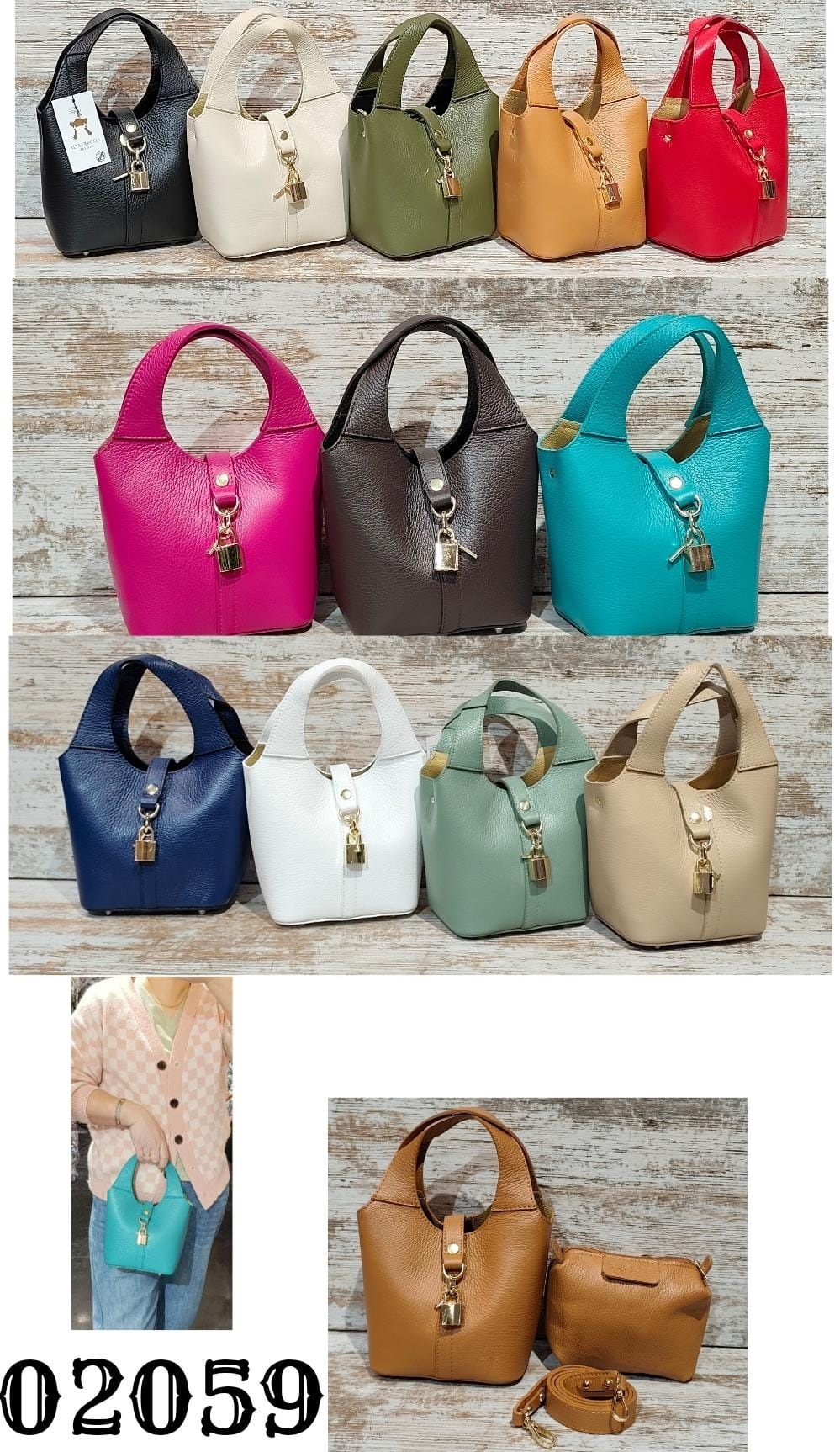 Bolso Piel Estilo Cesta con Neceser Cierre Candado